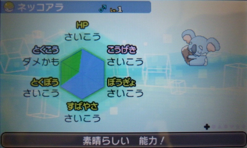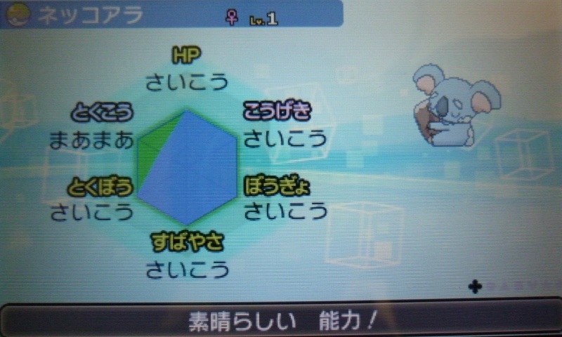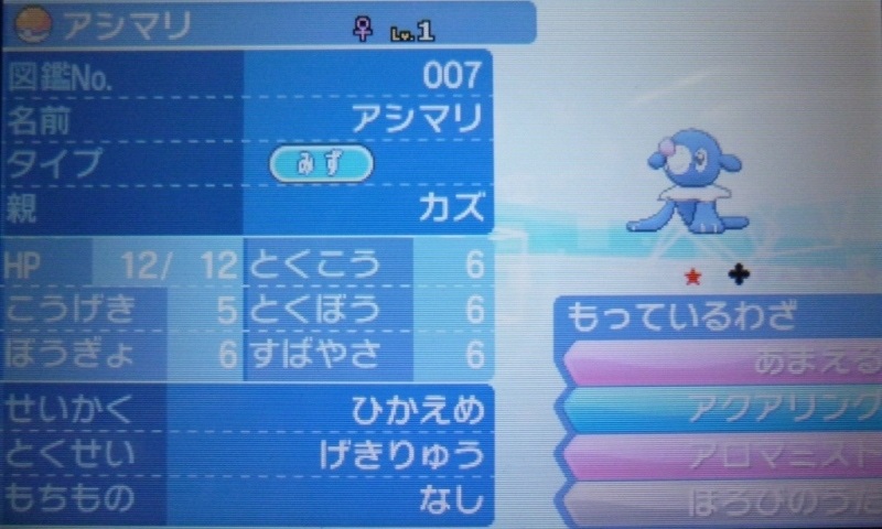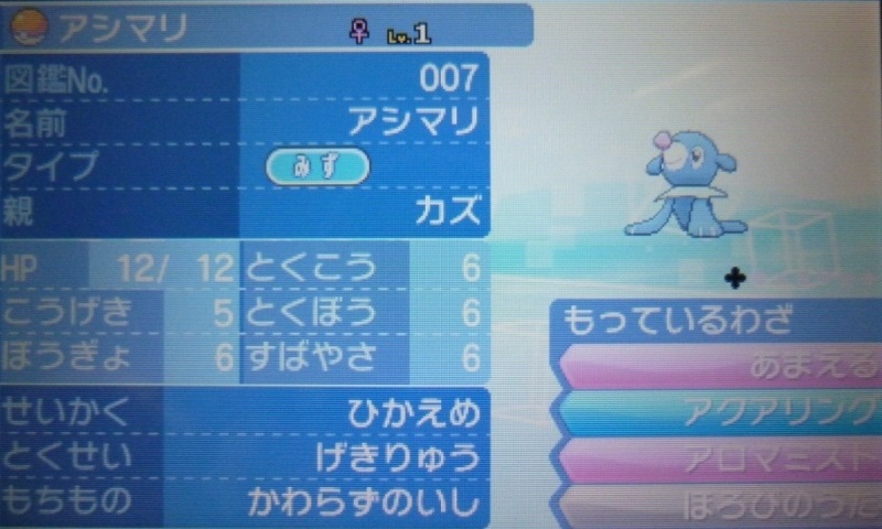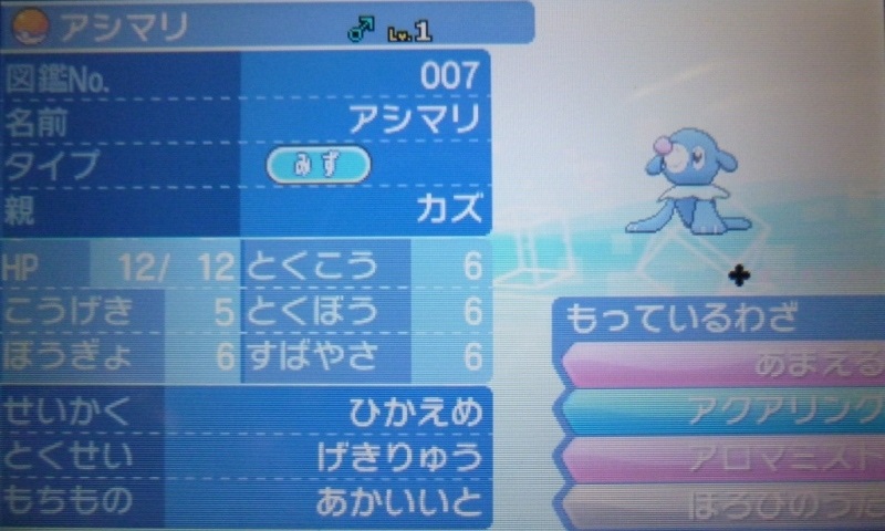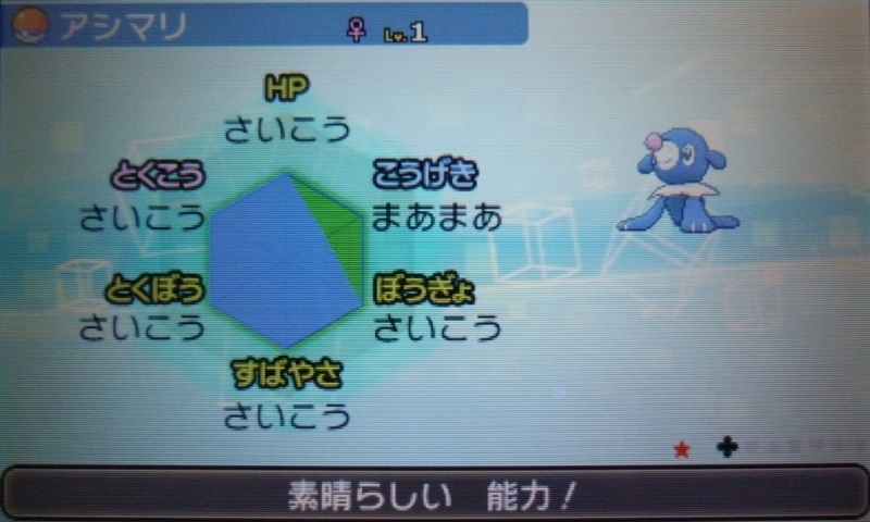 で、結果生まれたのが、★5Vアシマリ♀(Aまあまあ)。